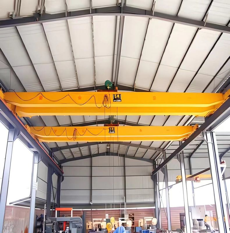 雙梁橋式起重機的安全檢查為了保證橋式起重機的安全運行,在起重機運行期間需進行一些安全常規檢查,檢查項目及要點如下:  (1) 起升高度限位器、行程限位開關及各聯鎖機構性能正常,安全可靠?! 。?) 各主要零部件符合安全要求:開口增大小于原尺寸的15%,扭轉變形小于10%;板鉤襯套磨損小于原尺寸的50%,板鉤心軸磨損小于5%,無剝落、毛刺、焊補。吊鉤掛架及滑輪無明顯缺陷。鋼絲繩表面鋼絲磨損、腐蝕量小于鋼絲直徑的40%,斷絲在一個捻距內小于總絲數的10%,無斷頭,無明顯變細,無芯部脫出、死角扭擰、擠壓變形、退火、燒損現象。鋼絲繩端部連接及固定的卡子、壓板、鍥塊連接完好,無松動,壓板不少于2個,卡子數量不少于3個。卷筒無裂紋,連接、固定無松動;筒壁磨損小于原壁厚的20%;安全卷不少于2圈,卷筒與鋼絲繩直徑比例符合要求。平衡輪固定完好,鋼絲繩應符合的要求。制動器無裂紋,無松動,無嚴重磨損,制動間隙兩側相等尺寸合適,有足夠的制動力,制動帶磨損小于原厚度的50%?! ⊥ㄟ^對雙梁橋式起重機的安全常規檢查,對杜絕人身事故,減少設備事故,提高設備運轉率,降低檢修費用等均起到了顯著作用。